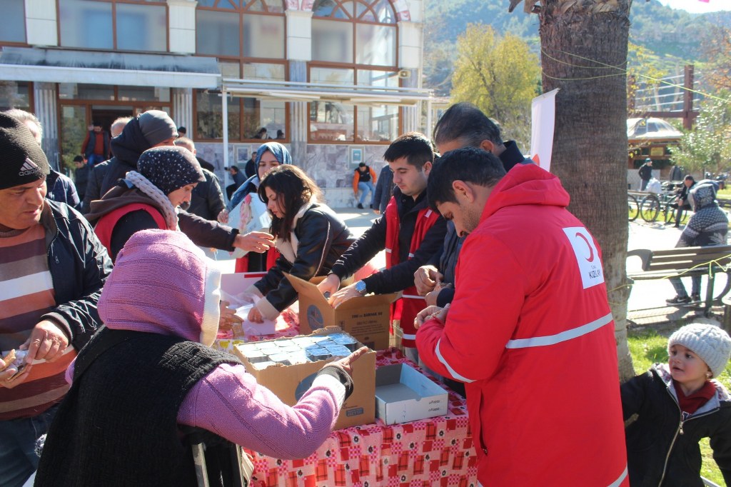Türk Kızılay’ı Fethiye şubesi yönetim kurulu başkanı Burhanettin Tuna “6 Şubat asrın felaketinde hayatına kaybeden kardeşlerimize Allah’tan Rahmet diliyoruz, unutmadık, unutmayacağız” dedi. Kızılay Fethiye şubesi tarafından Cuma namazına müteakip Fethiye Merkez Yeni Caminde lokum ve bisküvi ikramında bulunuldu. Kızılay Fethiye Şube Başkanı Burhanettin Tuna ve yönetim kurulunun da hazır bulunduğu ikramlarda Cuma namazından çıkan vatandaşlara lokum, bisküvi ve diğer içecek ikramlarında bulunuldu. Depremde hayatını kaybeden vatandaşlar için Cuma namazı sonunda dualarda bulunulurken, cami önünde de Kızılay Fethiye şubesi ilgilileri tarafından vatandaşlara ikramlar gerçekleştirildi. Kızılay Fethiye Şube Başkanı Burhanettin Tuna “6 Şubat asrın felaketini unutmak mümkün değil. Unutmamak için de deprem şehidi kardeşlerimiz için caminin önünde ikramlarda bulunalım dedik. Hem onlar için bir Fatiha okuyalım, hem de depreme karşı binalarımızı iyi yapmak için farkındalık yaratalım istedik. Bundan dolayı katılımcılara, yönetim kurulu üyesi arkadaşlarımıza teşekkür ediyorum. Rabbim bir daha bu tür felaketleri ülkemize, tüm insanlığa yaşatmasın.” ifadelerinde bulundu. Haber/foto-Gökhan Ayyıldız