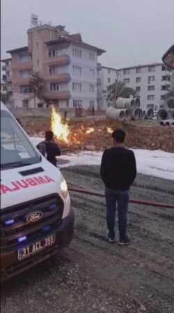 Antakya ilçesi Akevler Mahallesi’nde şantiye sahasında çalışma yürüten ekipler, doğalgaz borusuna zarar verdiler. Zarar gören doğalgaz borusunda yaşanan kaçak alevlere teslim oldu. Alevlerin sirayet ettiği park halindeki hafif ticari aracı gören vatandaşlar durumu itfaiye ekiplerine bildirdi. Bölgeye gelen itfaiye ekipleri, alevlere müdahale ederek yangını kontrol altına aldı. Yangında araç kullanılmaz hale geldi. Doğalgaz dağıtım şirketi ekipleri ise ihbar üzerine bölgeye gelerek hattaki arızayı giderdi ve sahayı güvenli hale getirdi./İHA
