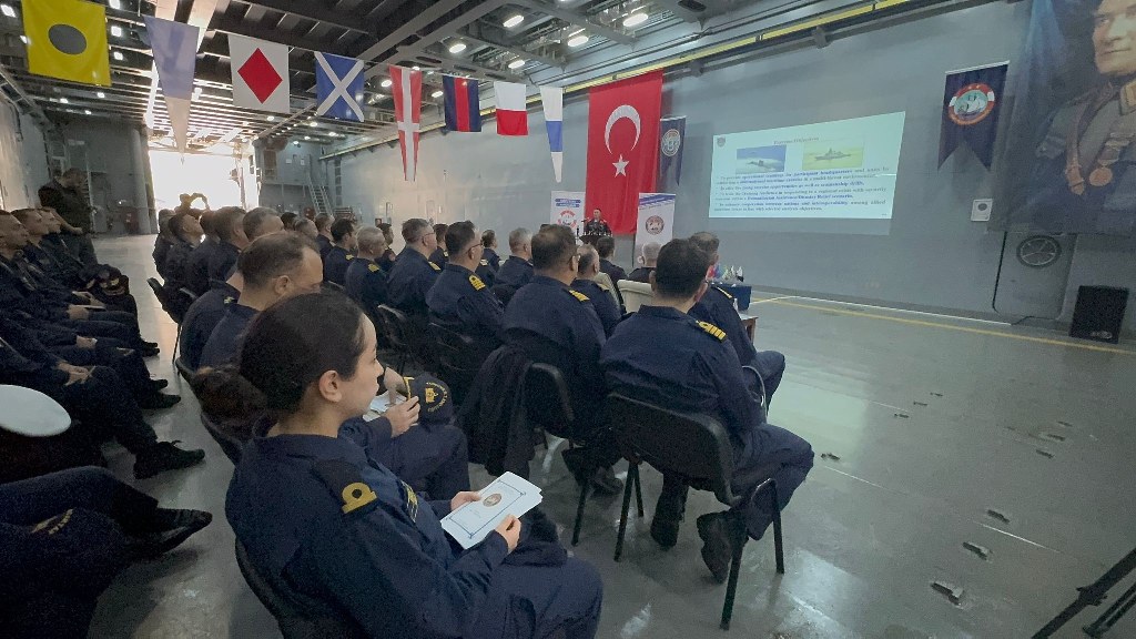 Muğla’nın Marmaris ilçesindeki Aksaz Deniz Üs Komutanlığında gerçekleştirilen toplantıya, Harp Filosu Komutanı Tümamiral Mehmet Baybars Küçükatay, Güney Görev Grup Komutanı Tuğamiral İlyas Ergel, NATO Daimi Deniz Kuvveti Komutanı (COM SNMG-2), NATO Daimi Mayın Karşı Tedbirleri Komutanı (COM SNMCMG-2), Komodorlar, Türk ve yabancı gemi komutanları ile 15 ülkeden katılan yabancı gözlemci ve askeri heyetler yer aldı.