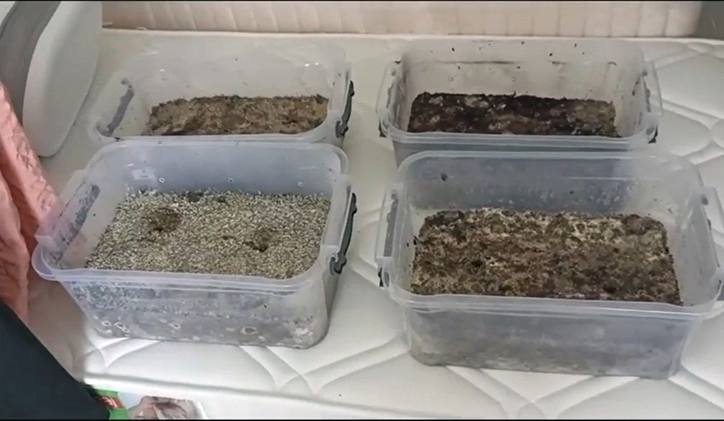 Yapılan aramada 18 adet kavanoz içerisinde 14 bin 400 gram LSD emdirilmiş tohum, 5 adet kavanoz içerisinde 2 bin 600 gram sıvılaştırılmış LSD, 4 adet kavanoz içerisinde 1130 gram olgunlaşmış sihirli mantar, 5 adet kavanoz içerisinde kurutulmaya hazır 3 bin 500 gram sihirli mantar, 25 adet LSD hap, 192 adet LSD emdirilmiş kullanıma hazır A4 kağıt, 32 gram LSD emdirilmiş kurabiye, 6 adet 30x15 cm boyutlarında saklama kaplarının içerisinde 36 kök sihirli mantar, 293 gram LSD emdirilmiş jel, elektrikli gıda kurutma cihazı, 3 adet hassas terazi, 2 adet kapsül dolum cihazı, 2 adet bitki üretim aparatı, 90 adet enjektör, 2 bin adet boş kapsül ele geçirildi.