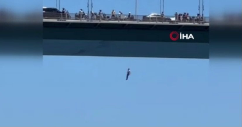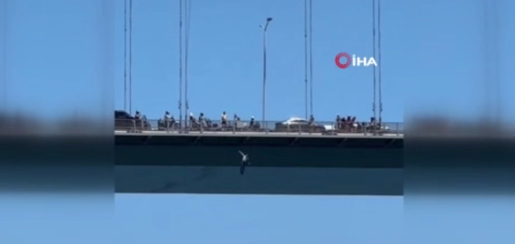 15 Temmuz Şehitler Köprüsü'nden atlayan bir kişi hayatını kaybetti. Şahsın köprüden atladığı anlar, cep telefonu kamerasına yansıdı.