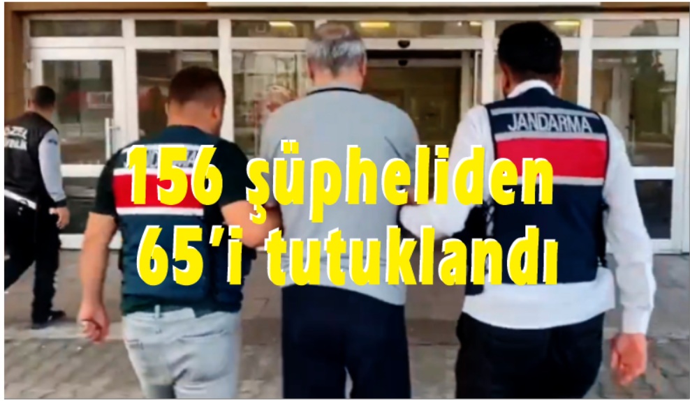 30 ilde FETÖ'ye yönelik jandarma tarafından düzenlenen operasyonlarıda; 156 şüpheliyi yakalandı, şüphelilerden; 65'i tutuklandı