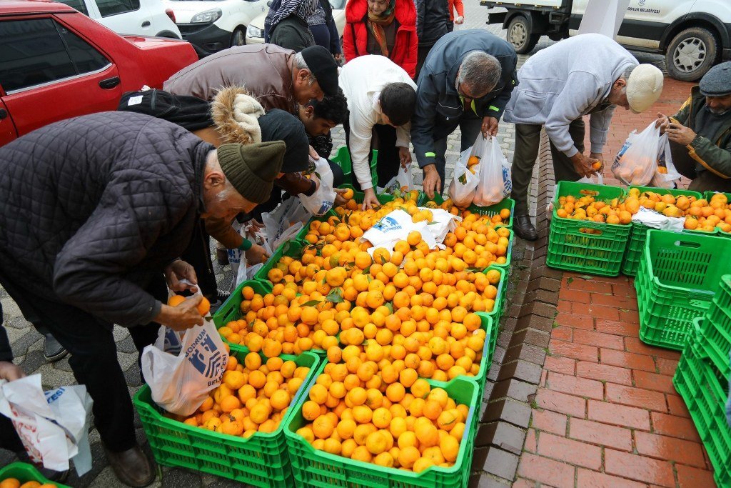 “Üreticimizden Alıyoruz, Halkımızla Buluşturuyoruz Projesi” kapsamında Bodrum mandalin dağıtımı Bodrum Belediye Meydanında devam ediyor.