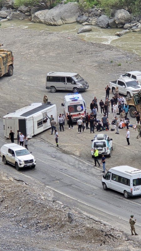 Kaza, Çukurca yolunda meydana geldi. Bölgede etkili olan yağış nedeniyle kayganlaşan yolda direksiyon hakimiyeti kaybedilen midibüs devrildi. Olayın bildirilmesi üzerine bölgeye AFAD, itfaiye, jandarma ve sağlık ekipleri sevk edildi. Midibüsteki 13 askerden hafif yaralanan 6 asker, olay yerinde yapılan ilk müdahalenin ardından ambulanslarla hastaneye sevk edildi.