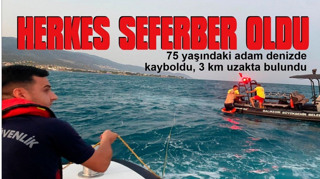 75 yaşındaki adam yüzmek için girdiği denizde kayboldu. Kendisinden saatlerce haber alınamayan adam ile ilgili itfaiye kurtarma ve sahil güvenlik ekipleri seferberlik ilan ederken, kaybolan vatandaş kıyıdan 3 kilometre açıkta sağ olarak bulundu.