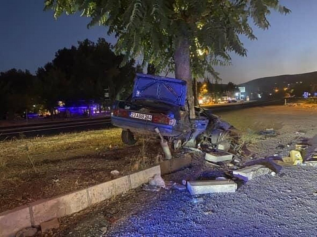 Elazığ’da meydana gelen kazada ağaca çarpan Fiat Tofaş marka araç hurdaya dönerken, sürücü ağır yaralandı.