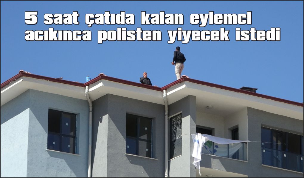 Alacağını alamadı çatıya çıktı, polis yiyecek verip indirdi