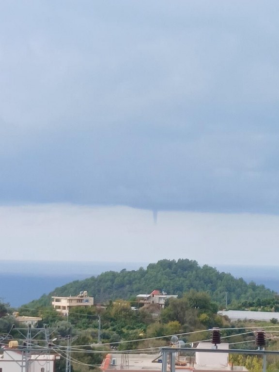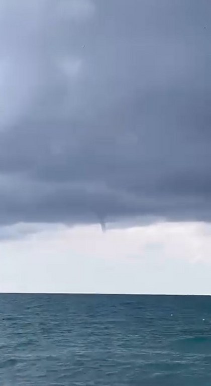 Alanya'ya sağlı Konaklı Mahallesinde sabah saatlerinde deniz üzerinde oluşup karaya ulaşmadan kısa süre sonra etkisini kaybeden hortum vatandaş tarafından cep telefonu kamerasıyla görüntülendi./İHA