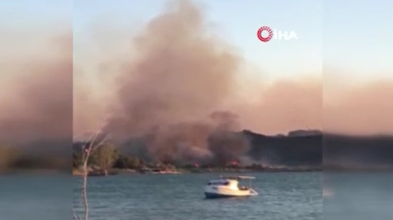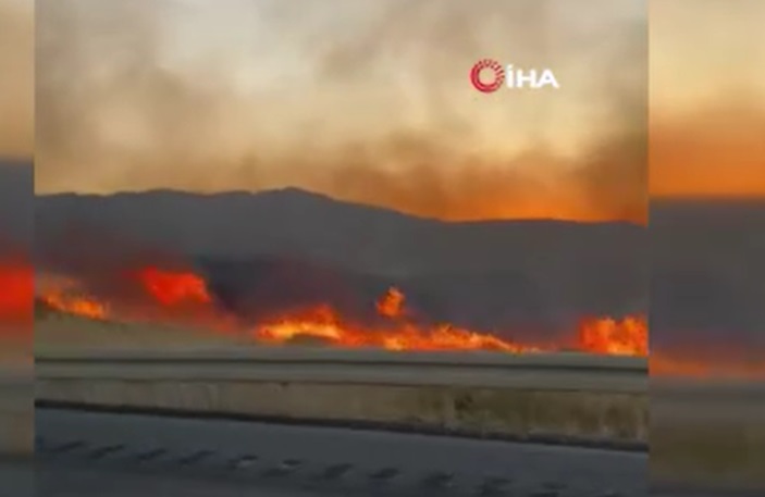 yangını kontrol altına almak için havadan ve karadan Müdahale ediliyor(İHA)
