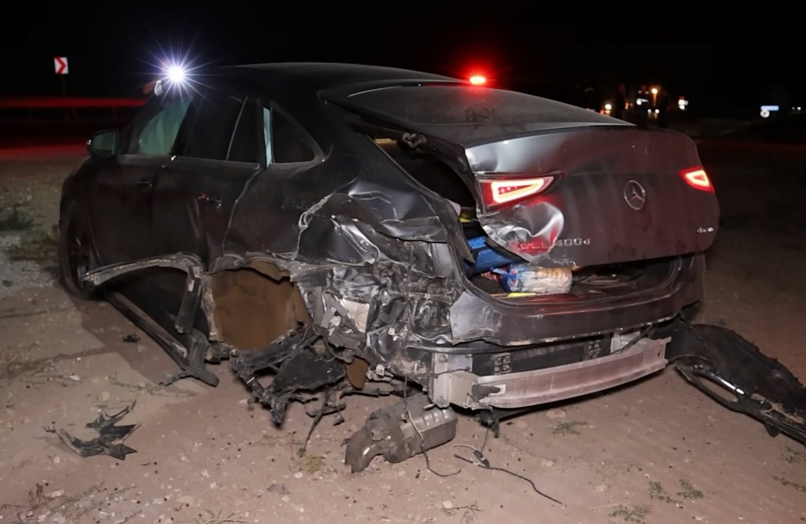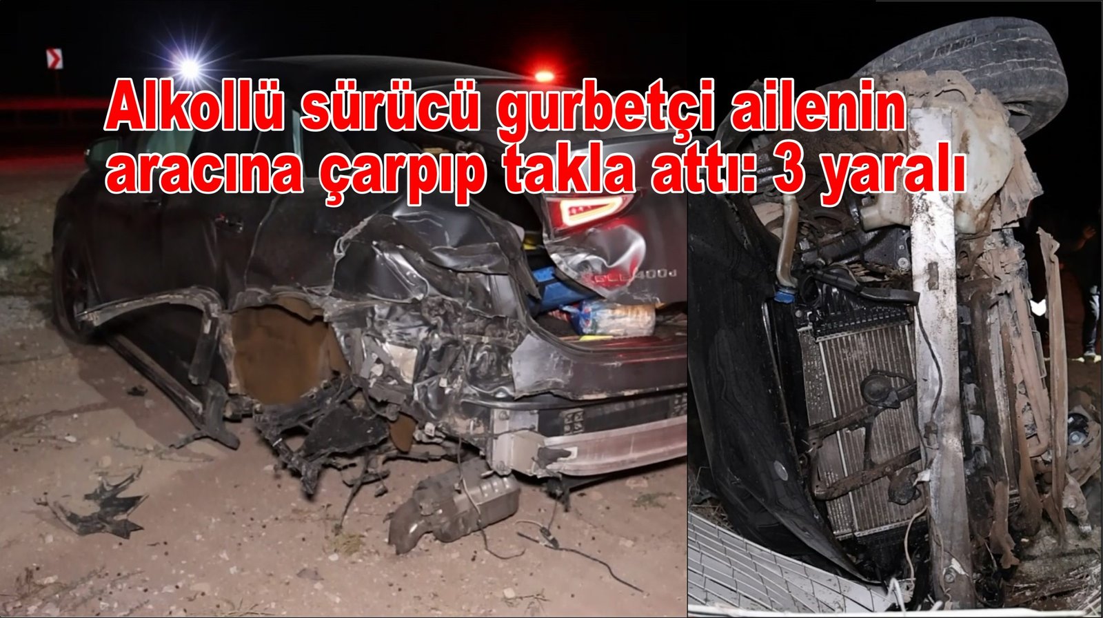 Çarpmanın etkisiyle yabancı plakalı otomobil şarampole düşerken, diğer otomobil aşırı hız nedeniyle takla atarak yol kenarında bulunan güneş enerjisi santrali bariyerlerine çarpıp araziye düştü. Araçların hurdaya döndüğü kazada, sürücüler ve yabancı plakalı araçta yolcu olarak bulunan Dilber Ö. yaralandı.