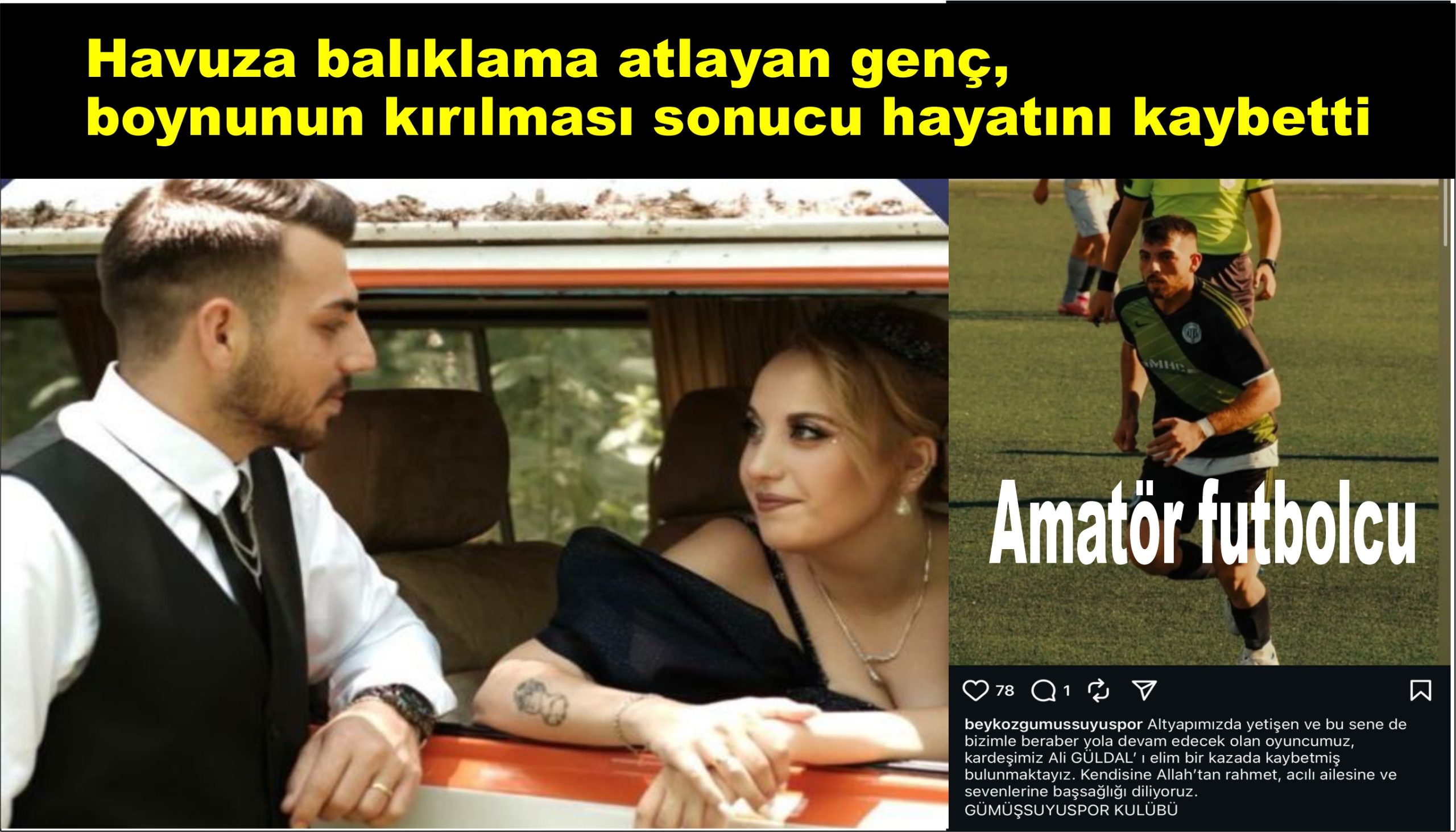Sakarya’nın Karasu ilçesinde serinlemek için havuza balıklama atlayan genç, boynunun kırılması sonucu hayatını kaybetti. Amatör futbolcu olduğu ve kısa bir süre önce nişanlanan 24 yaşındaki gencin, nişanlısı ile birlikte 3 günlüğüne Karasu’ya tatile geldiği öğrenildi.