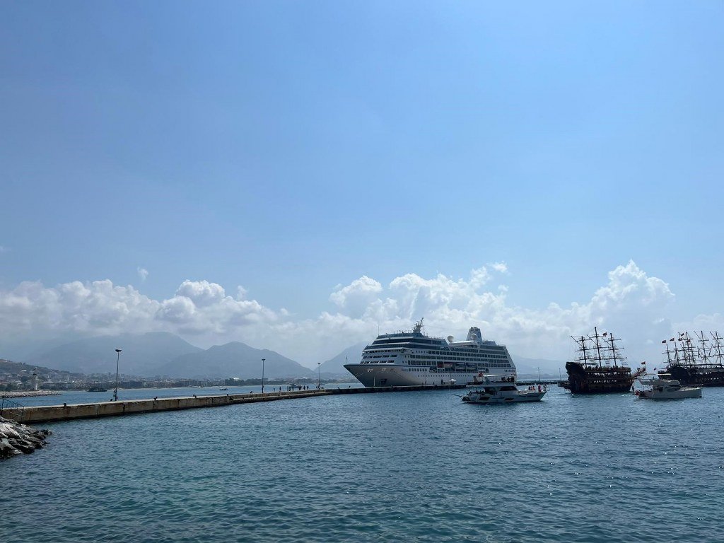 Marshall Adaları bandıralı ‘Nautica’ isimli kruvaziyer yolcu gemisi, 602 ABD vatandaşı yolcusu ile sabah saatlerinde Alanya iskelesine demir attı.