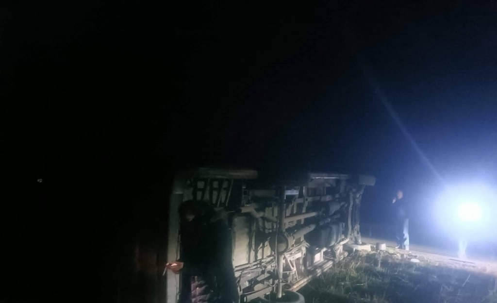 Ankara'nın Nallıhan ilçesinde işçileri taşıyan servisin yağmurdan ötürü kayganlaşan yolda kontrolden çıkarak devrildiği kazada 14 kişi yaralandı
