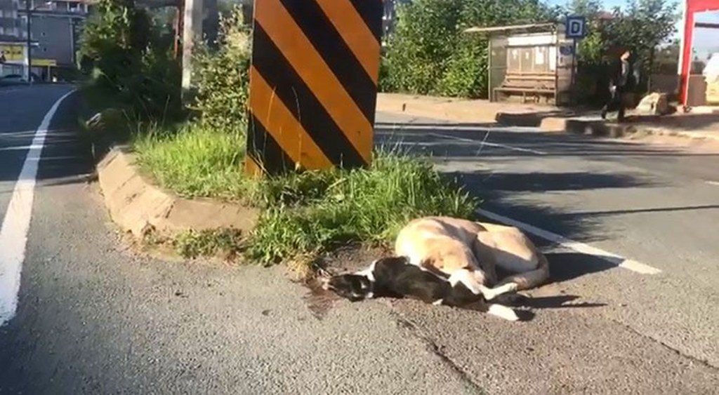 Artvin'in Kemalpaşa ilçesinde yolun karşısına geçmeye çalışan yavru köpeğe otomobil çarptı. Kazada telef olan köpeğin başından annesinin saatlerce ayrılmaması yürek burktu.
