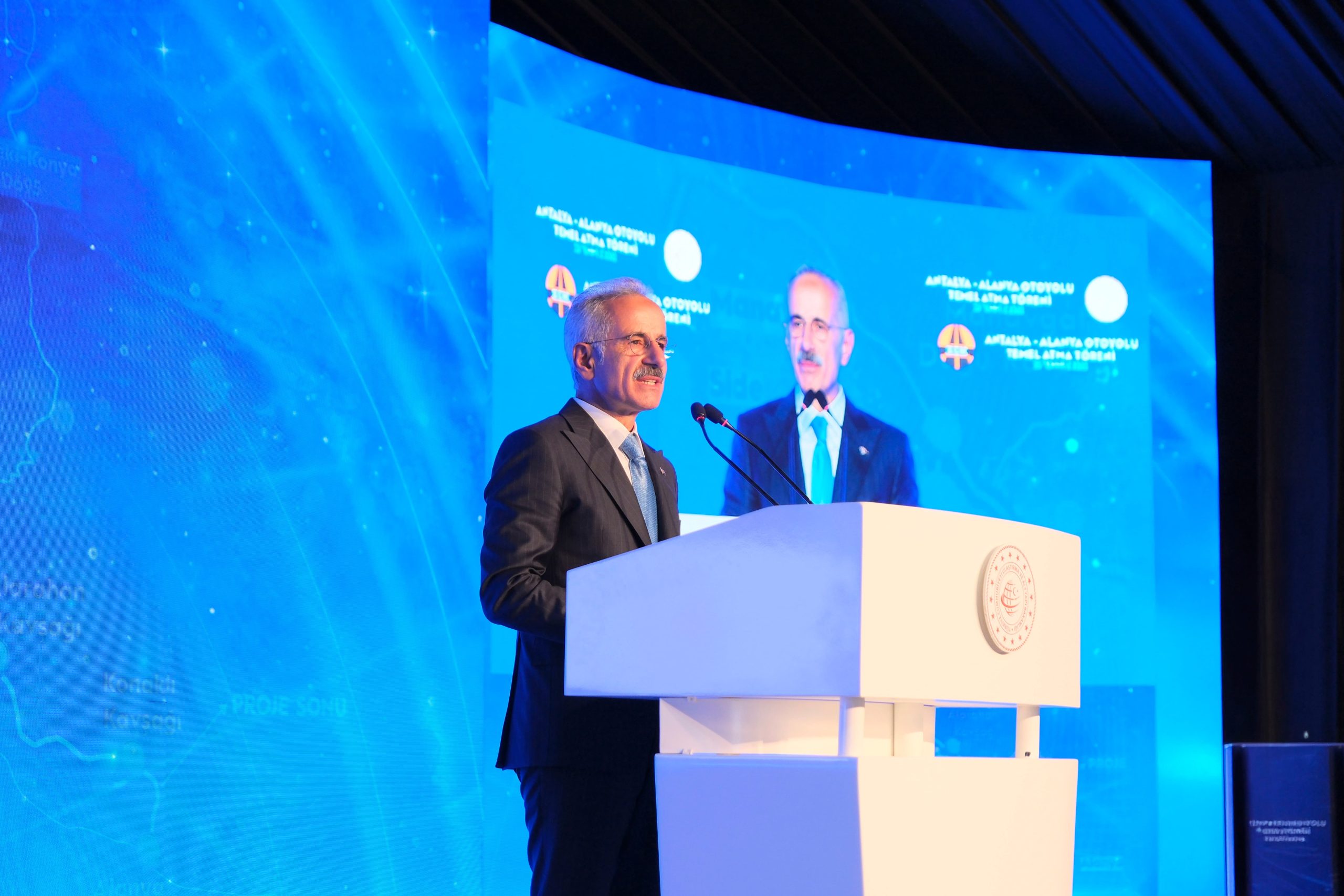 Antalya-Alanya Otoyolu’nun temel atma töreninde konuşan Ulaştırma ve Altyapı Bakanı Abdulkadir Uraloğlu, 2002 yılından bu yana Antalya’nın ulaşım ve iletişim altyapısı için yaklaşık 235,1 milyar lira yatırım gerçekleştirdiklerini söyledi. Antalya’daki turizm faaliyetleri ve nüfus artışına paralel olarak gelişen trafik yoğunluğundan dolayı Antalyalıların şehir içi ulaşımını rahatlatmak amacıyla yeni bir adım attıklarını söyleyen Uraloğlu, konuşmasında; "Antalya-Alanya Otoyolumuzun yapım çalışmalarını başlatmanın sevincini ve gururunu yaşıyoruz. Antalya ve Alanya, Türkiye’mizin turizmde parlayan yıldızlarıdır. Her yıl milyonlarca misafiri ağırlayan bu merkezlerimiz, yazın sıcak günlerinden kışın ılık esintilerine kadar her mevsim bir cazibe noktası. Ancak, artan nüfus ve turizm hareketliliği, ulaşım altyapımıza yeni bir soluk getirme ihtiyacını doğurdu. İşte, Antalya-Alanya Otoyolu, tam da bu ihtiyaca cevap vermek için doğuyor. Otoyolumuz, 84 kilometre ana gövde ve 38 kilometre bağlantı yoluyla toplam 122 kilometrelik bir medeniyet hattıdır. Proje kapsamında; Serik, Taşağıl, Manavgat, Manavgat Doğu, Alarahan Kavşağı, Konaklı Kavşağı ve Alanya Batı Kavşakları olmak üzere 7 adet kavşak, 4.365 metre uzunluğunda 5 tünel, 5.966 metrelik 16 viyadük ve 4 adet otoyol hizmet tesisi ile modern mühendisliğin en güzel örneklerinden birini inşa edeceğiz. Bu yol, Antalya’nın portakal çiçeği kokusunu, Alanya’nın muz bahçelerini, Toroslar’ın çam ormanlarını ve Akdeniz’in esintisini birleştiren bir köprü olarak turizm ve tarımın kalbinin attığı bu güzel coğrafyada, insanımızı, ticaretimizi ve kültürümüzü daha hızlı, daha güvenli ve daha konforlu bir geleceğe taşıyacak. Otoyolumuzun tasarım hızı ana taşıt yolu boyunca saatte 140 km olarak belirlenirken, bağlantı yolları için saatte 110 km olacak şekilde planladık. Özellikle yaz aylarında yoğunlaşan trafiği rahatlatacak, seyahat sürelerini kısaltacak ve vatandaşlarımıza stressiz bir yolculuk sunacak" dedi.
