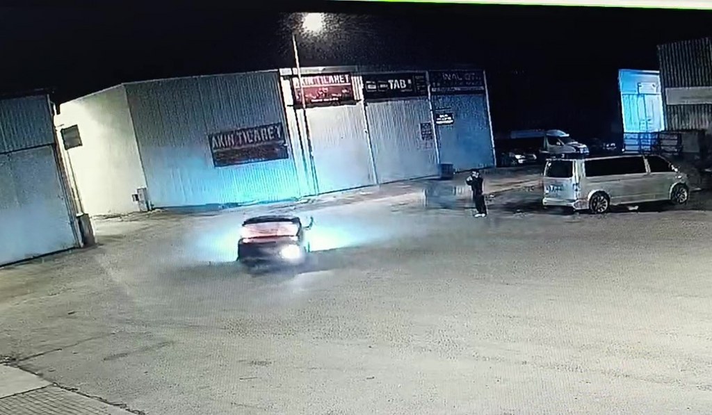 Antalya'da bir araç sürücüsü sanayi sitesinde drift yaparken, araçtan inen arkadaşı o anları cep telefonu ile kaydetti