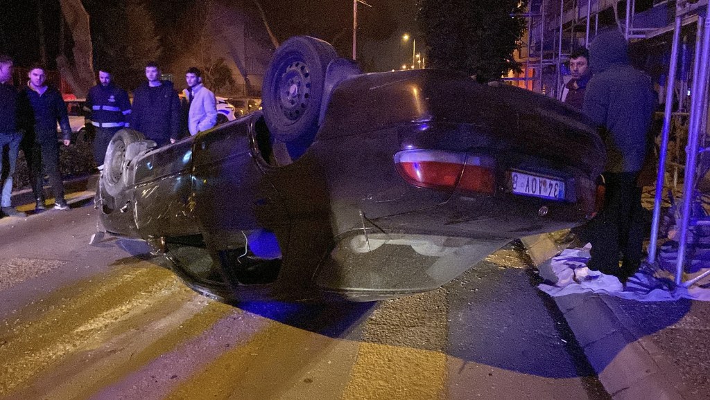 Aydın'ın Efeler ilçesinde sürücüsünün direksiyon hakimiyetini kaybettiği otomobil, orta refüjdeki aydınlatma direğine çarparak takla attı. Park halindeki bir araca çarparak duran otomobilde bulunan 4 kişi yaralandı.