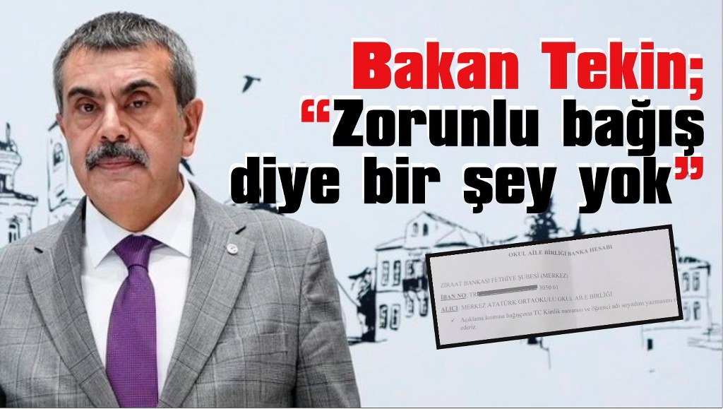 Bakan Yusuf Tekin, okullarda zorunlu bağış tartışmalarıyla ilgili de konuştu. MEB’e bağlı okullarda “Okul Aile Birliği” adı altında toplanan zorunlu bağışlar ise kafa karıştırıyor..