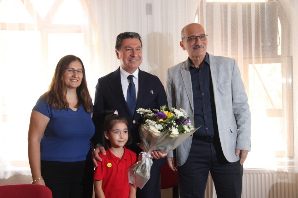 Muğla Büyükşehir Belediye Başkanı Ahmet Aras ve beraberindeki heyet yeni eğitim-öğretim yılının açılışı dolayısıyla Kocamustafendi İlkokulu’nu ziyaret etti. Öğrencilerden yoğun ilgi gören Aras, suluklar hediye ederek pet şişe kullanımının azaltılması gerektiğine dikkat çekti.