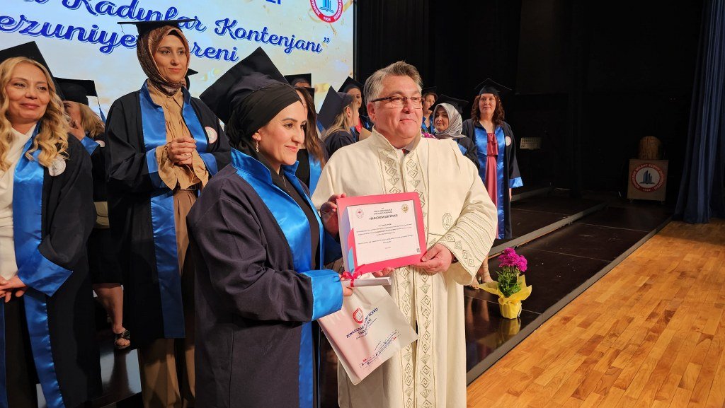 Zonguldak'ta 34 yaş üstü kadınlar için açılan ek kontenjandan üniversiteye giren ilk grup mezun oldu. Duygu dolu anların yaşandığı mezuniyet töreninde başörtü yasağı nedeniyle üniversite okuyamadığını hatırlatan Nilüfer Bağcı,
