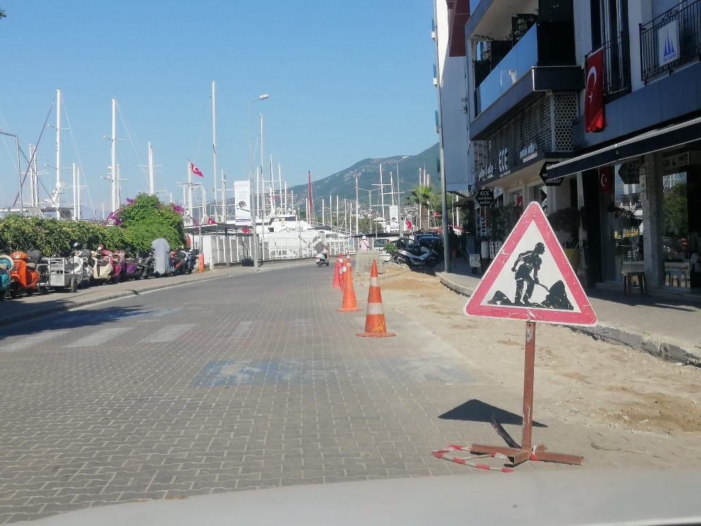 Yerli ve yabancı turistlerin uğrak yeri, marina ve otellerin bulunduğu Fethiye İlçe Turizm Danışma Bürosu önü, Fevzi Çakmak Caddesi’nde bu tarihte belediye çalışma yapıyor. Trafiğin de sakin olduğu kış aylarında değil de Mayıs’ta böyle çalışma yapılması tatilcileri de turizmcileri de rahatsız ediyor, tepki yağıyor.
