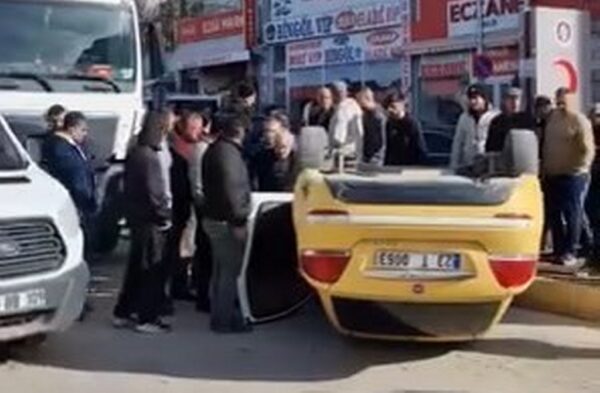 Kaza, Üniversite Mahallesi Yahya Kemal Caddesi’nde meydana geldi. Edinilen bilgiye göre, beton mikseri ile çarpışan ticari taksi ters döndü. Kazada, taksi sürücüsü hafif yaralandı. Haber verilmesi üzerine olay yerine sağlık ve polis ekipleri sevk edildi. Yaralı, sürücünün tedavisi olay yerine gelen ambulans içerisinde yapıldı. Polis ekipleri kazayla ilgili inceleme yaptı./İHA