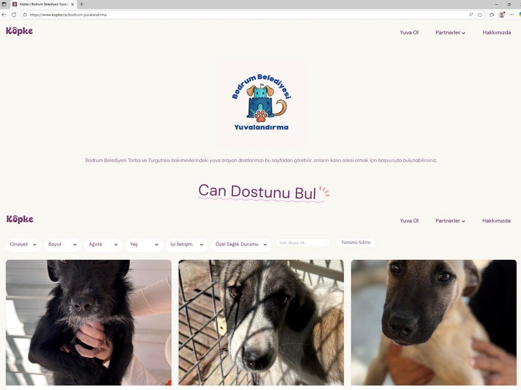 KÖPKE’nin "Can Dostunu Bul" web sayfası üzerinden vatandaşlar; cinsiyet, boyut, yaş, iletişim derecesi ve özel sağlık durumu gibi filtreleri kullanarak kendilerine en uygun dostlarını kolayca bulabiliyor.