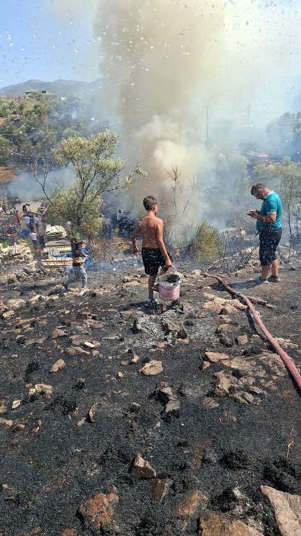 Mumcular Mahallesi’nde dere yatağında bilinmeyen bir nedenle yangın başladı. Yangın, kısa sürede büyüyerek otluk ve zeytinlik alana sıçradı. Rüzgarla büyümeye başlayan yangının ikametleri de tehdit etti.