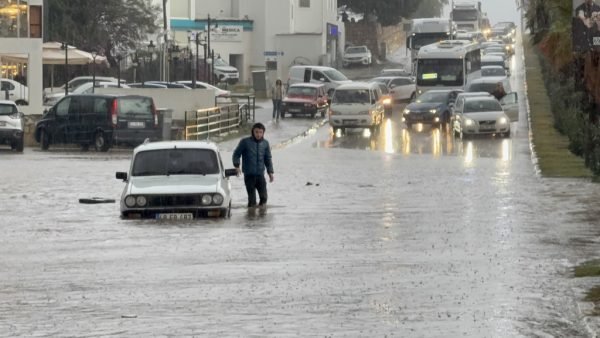 Bodrum'da sabah saatlerinde bir anda bastıran sağanak, ilçeyi sular altında bıraktı. Cadde ve sokaklar sel sularıyla dolarken araçlar suyun içinde sürüklenme tehlikesi yaşadı. Sürücüler panikle kapıları açıp dışarı çıkmaya çalıştı, kimi araçlar hareketsiz şekilde yarıya kadar suya gömüldü.