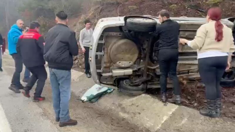 Bolu'da Abant Gölü Milli Parkı yolunda kontrolden çıkan bir otomobil, takla attı.