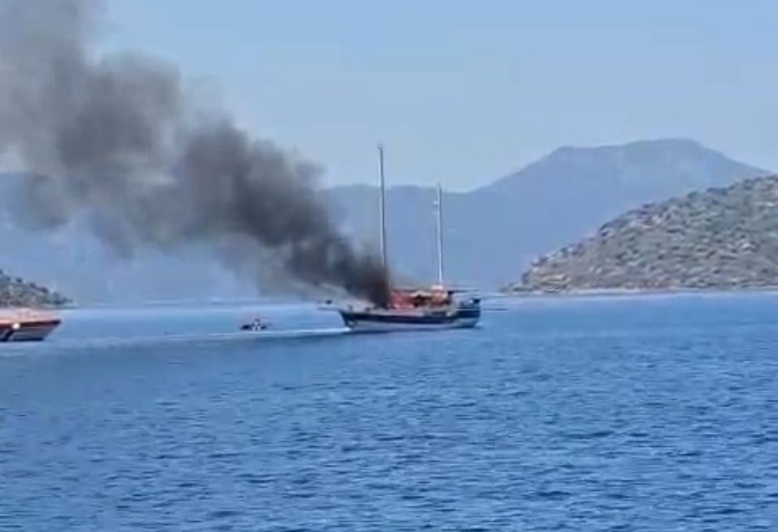 MUĞLA'NIN MARMARİS İLÇESİNDEKİ BİR TERSANENİN İSKELESİNDE BAĞLI BULUNAN TEKNEDE ÇIKAN YANGINDA SOĞUTMA ÇALIŞMALARI DEVAM EDERKEN YENİDEN ALEV ALAN TEKNE GÜVENLİK ÖNLEMLERİ ÇERÇEVESİNDE AÇIĞA ALINDI. EKİPLERİN TÜM ÇABALARINA RAĞMEN KONTROL ALTINA ALINAMAYAN YANGINDA TEKNE DENİZDE BATTI. (GÜLDEMET KIZIL/MUĞLA-İHA)Muğla'nın Marmaris ilçesindeki bir tersanenin iskelesinde bağlı bulunan teknede çıkan yangında soğutma çalışmaları devam ederken yeniden alev alan tekne güvenlik önlemleri çerçevesinde açığa alındı. Ekiplerin tüm çabalarına rağmen kontrol altına alınamayan yangında tekne denizde battı.[/caption] [caption id="attachment_122575" align="alignnone" width="1125"]