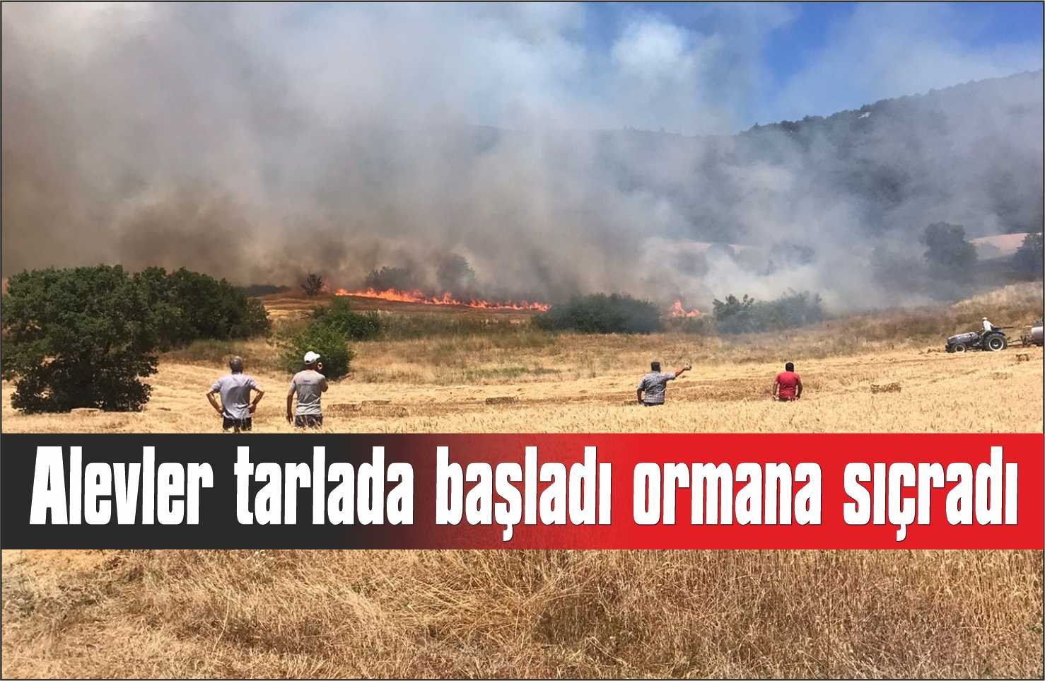 Buğday tarlasında çıkan yangın ormana sıçradı