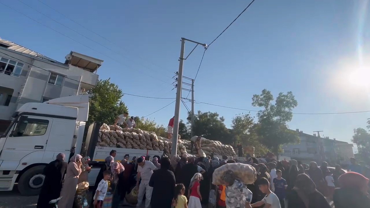 Bursa'nın İnegöl ilçesinde bir hayırsever, ihtiyaç sahiplerine destek olmak amacıyla 1 tır dolusu patatesi ücretsiz dağıttı.