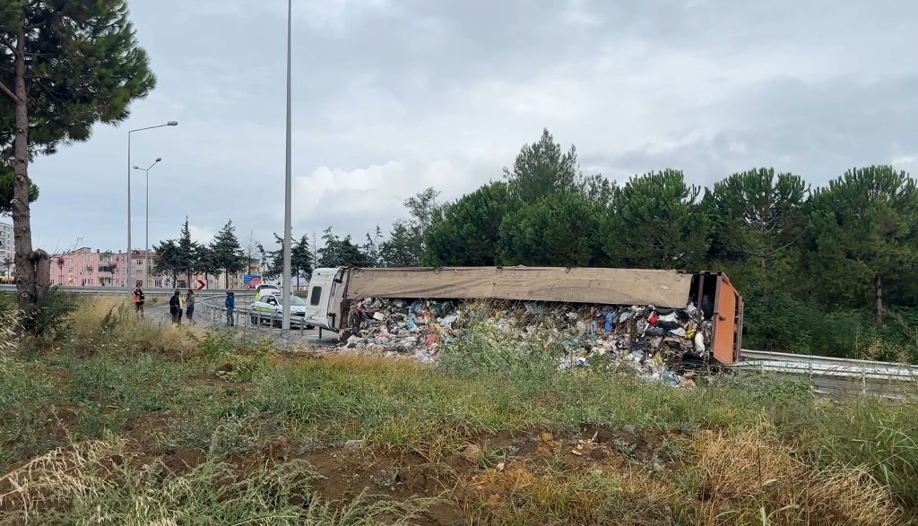 Samsun’un İlkadım ilçesinde çöp yüklü bir tırın devrilmesi sonucu dorsedeki çöpler yola savruldu. Kazanın ardından çevrede kötü koku oluşurken, temizlik ekipleri çalışma başlattı.