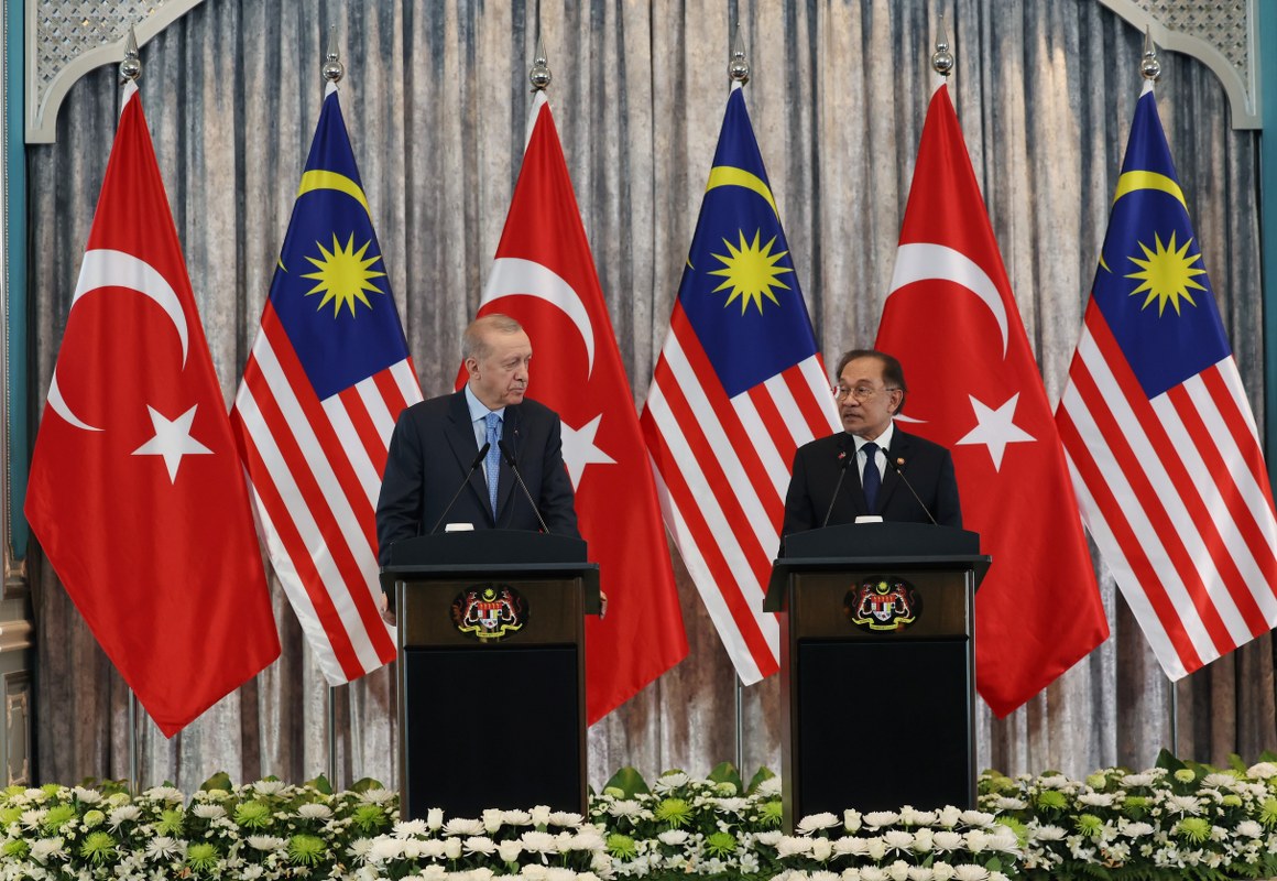 Cumhurbaşkanı Recep Tayyip Erdoğan, Malezya temasları kapsamında Malezya Başbakanı Enver İbrahim ile görüşmesinin ardından ortak basın toplantısı düzenledi. Cumhurbaşkanı Erdoğan en son 2019 yılında ziyaret ettiği Malezya'da tekrar bulunmaktan duyduğu memnuniyeti dile getirdi, şahsına ve heyetine gösterilen hüsnükabulden dolayı Başbakan Enver İbrahim'e teşekkür etti. Geçen yıl Türkiye ve Malezya arasındaki diplomatik ilişkilerin 60. yıl dönümünü idrak ettiklerini hatırlatan Cumhurbaşkanı Erdoğan, Türk ve Malay halkları arasındaki dostluk ve kardeşlik bağlarının asırlar öncesine dayandığını söyledi. Cumhurbaşkanı Erdoğan, kapsamlı stratejik ortaklık tesis eden iki ülke olarak kadim ortak tarihten güç aldıklarını, ecdadın ayak izlerini takip ettiklerini ifade etti.