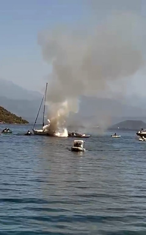 Yangının nedeni henüz belirlenemezken, koyda bulunan tatilciler panik yaşadı. Görgü tanıklarının cep telefonlarıyla kaydettiği anlarda teknenin kısa süre içerisinde cayır cayır yandığı görüldü. Başka tekneciler bot motoru ile su atarak yangını söndürmeye çalıştı.(İHA) -