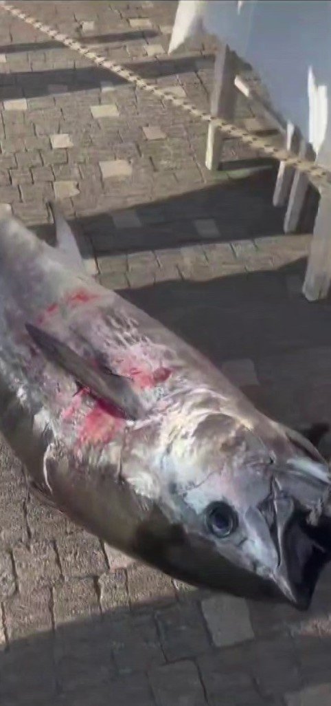 Bursa’nın Gemlik ilçesinde balıkçılar dev orkinos balığı yakaladı