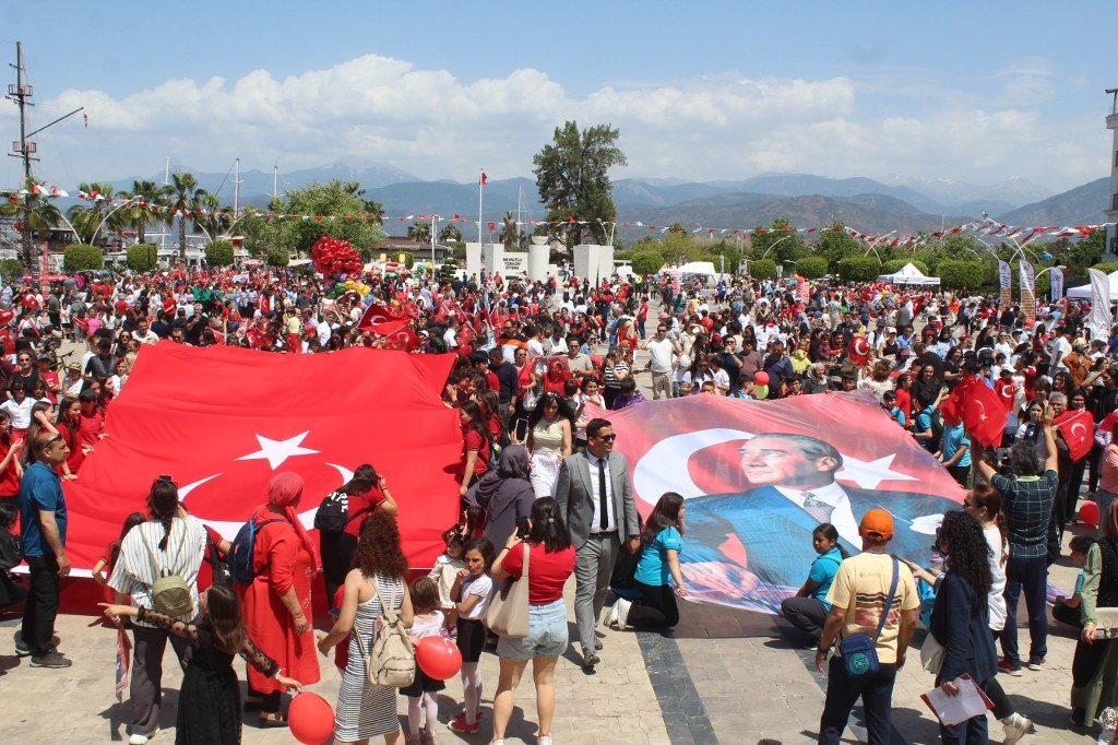 Fethiye’de 23 Nisan Ulusal Egemenlik ve Çocuk Bayramı Beşkaza meydanında düzenlenen çocuk şenliği ile kutlandı. Kortej yürüyüşü ile başlayan kutlama etkinlikleri Beşkaza meydanında düzenlenen çocuk şenliği ile devam etti.
