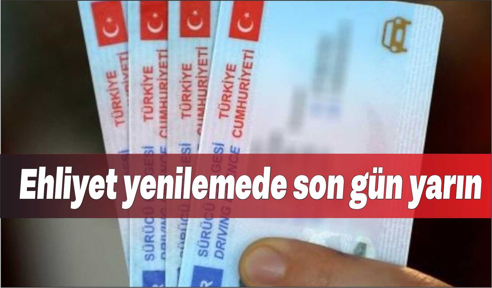 Eski tip sürücü belgesi kullanan vatandaşların ehliyetlerini yenilemeleri için tanınan süre yarın sona eriyor. Bu tarihe kadar yenileme işlemini gerçekleştirmeyenlerin ehliyetleri geçersiz sayılacak.