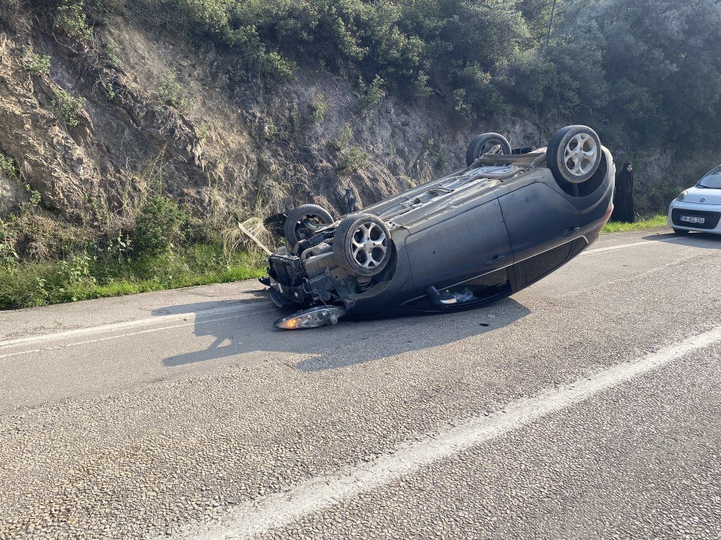 Bursa’nın Mudanya ilçesi Kumyaka girişinde kontrolden çıkan otomobil kayalara çarparak ters döndü. Sürücü ve yolcu, emniyet kemeri sayesinde kazayı yara almadan atlattı. Edinilen bilgilere göre, Tirilye yönünden Mudanya istikametine seyir halinde olan 59 RS 954 plakalı otomobilin sürücüsü İsmet Y. (68), virajlı yolda zeminin kaygan olması sebebiyle direksiyon hâkimiyetini kaybetti. Kontrolden çıkan araç, yol kenarındaki kayalara çarparak ters döndü. Çarpmanın şiddetiyle büyük hasar alan araçta sürücü ve yanındaki yolcu sıkıştı. Emniyet kemerleri takılı olduğu için ciddi bir yaralanma yaşanmazken, ikiliye ilk müdahaleyi yoldan geçen bir vatandaş yaptı. Yardımcı olan vatandaşın desteğiyle araçtan çıkarılan sürücü ve yolcunun, sağlık ekiplerinin kontrolünün ardından durumlarının iyi olduğu belirlendi. Olay yerine kısa sürede jandarma ve polis ekipleri sevk edildi. Ekipler, kazayla ilgili inceleme başlatırken ters dönen araç çekici yardımıyla bulunduğu yerden kaldırıldı. Kazayla ilgili tahkikat devam ediyor./İHA