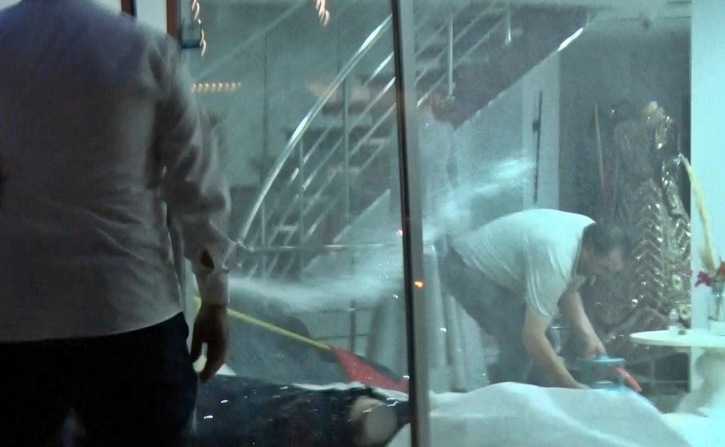 Belirtilen adrese gelen ekipler, kolonya ve dezenfektanı gelinliklerin üzerine döküp elinde çakmakla gezen Bahadır T.'yi uzun süre ikna etmeye çalıştı. Eşinin çocuklarını göstermediğini ve onların velayetini almak istediğini belirten Bahadır T. yine eşinin gelinlik mağazasının sattığını ileri sürüp eylemi bu yüzden yaptığını söyledi. Ekiplerin tüm çabalarına rağmen gelinlikleri parçalamaya devam edip içerideki eşyalara da zarar veren Bahadır T. bir süre sonra ise üst kattan aldığı mutfak tüpünü getirdi.