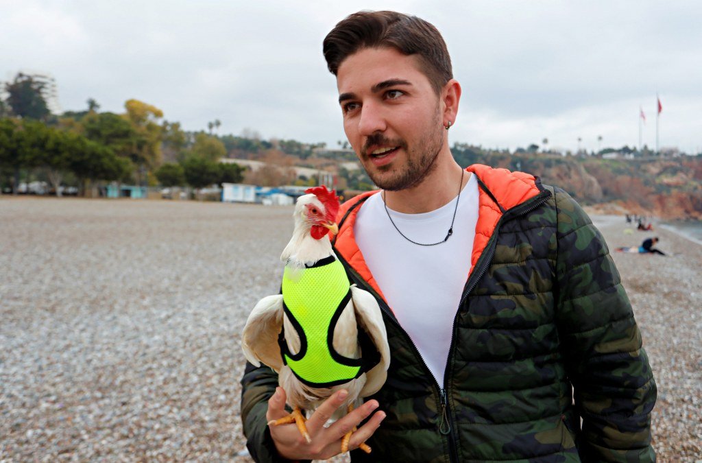 Antalya SUP board (kürek sörfü) yapan bir genç, falezlerden denize düşen bir tavuğu fark etti. Tavuğu denizden alarak kurtaran genç, sahile getirdikleri hayvanı temizleyip sahiplendi. Kurtarıldığı yerin anısına “Deniz” adı verilen tavuk, şimdi bir an olsun gencin yanından ayrılmıyor.