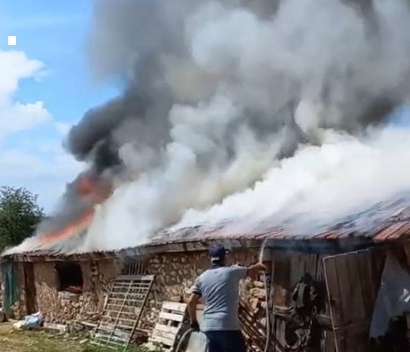 Odunpazarı ilçesi kırsal Sarısungur Mahallesi'nde bir ahırda mülk sahibinin iddiasına göre farelerin kemirdiği elektrik kablolarından çıkan kıvılcımlar yangına neden oldu. Mahalle Muhtarı Haydar Muharrem Uz'a ait olan ahırın içindeki hayvanlar yangından olumsuz etkilendi. Çevredekilerin durumu fark etmesiyle, alevlere şebeke suyu ile müdahile edilirken, bir yandan da 30 küçükbaş hayvan dışarıya tahliye edilemeye çalışıldı. Dumandan etkilenen hayvanların bazılarının tüyleri yanarken, hiçbirinin telef olmaması sevindirdi. Alevlerin kısa sürede sardığı ahır kullanılamaz hale geldi. Yangın çıkış ve panik anı evin güvenlik kamerasına an be an yansıdı.