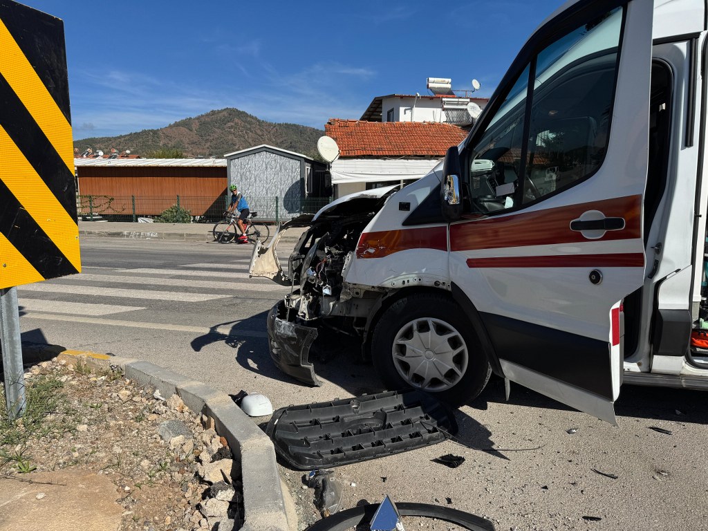 Muğla'nın Fethiye ilçesinde hafif ticari araçla ambulansın çarpışması sonucu araçtaki iki kişi yaralandı.