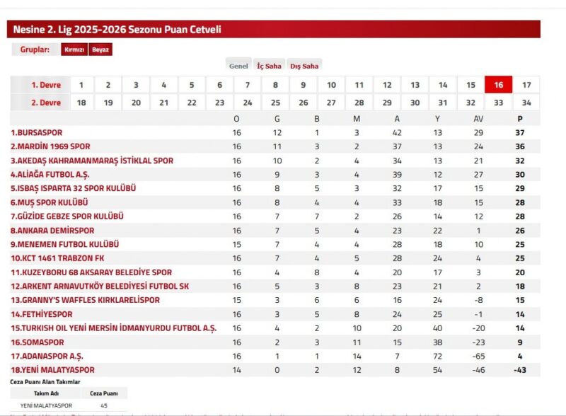 TFF'den yapılan açıklamaya göre, 13 Aralık 2025'te oynanması gereken Granny's Waffles Kırklarelispor maçına çıkmayan Malatya temsilcisi 3-0 mağlup sayıldı.
