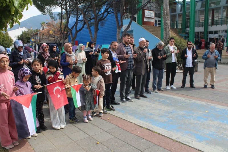 Eylemde; AGD Fethiye Başkan Yardımcısı Seyit Arık tarafından basın açıklaması yapıldı. Seyit Arık konuşmasında “Son dönemde artan Filistin ve İran’da yapılan zulme ve zalime lanet, mazluma dua için bir insanlık vazifesi olarak bu gün toplandık. Mübarek Ramazan ayını bizler iftar organizasyonları ve sahur sofralarında, dizilerle ve televizyon programları ile geçirirken aynı dünyada masum çocuklar katlediliyor. Hiçbir günahı olmayan çocuklar katlediliyor.