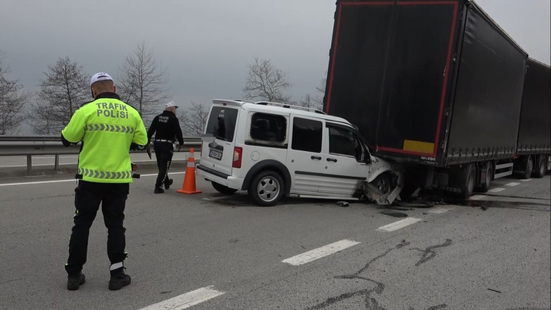 Çarpmanın etkisiyle hafif ticari aracın ön kısmı tırın altına girerek büyük hasar aldı. Araçta bulunan ön camların patladığı ve motor bölümünün ağır şekilde zarar gördü.