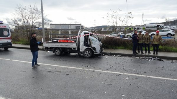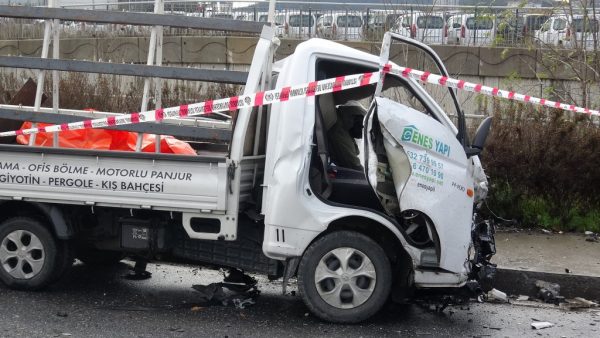 Sancaktepe'de yağışta kayganlaşan yolda kontrolden çıkarak hafriyat kamyonuyla çarpışan kamyonetin sürücüsü hayatını kaybetti