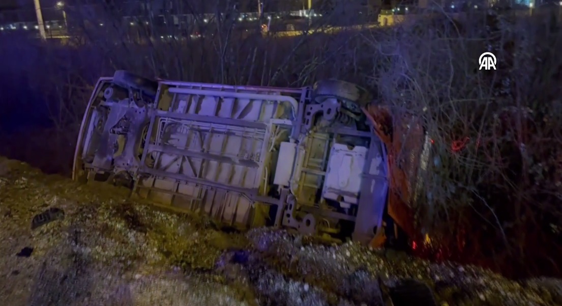 Çarpışmanın etkisiyle midibüs şarampole devrildi. İhbar üzerine bölgeye sağlık, polis ve itfaiye ekipleri sevk edildi.