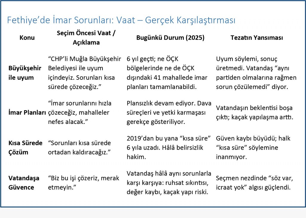 Fethiye’de İmar Sorunları: Vaat – Gerçek Karşılaştırması